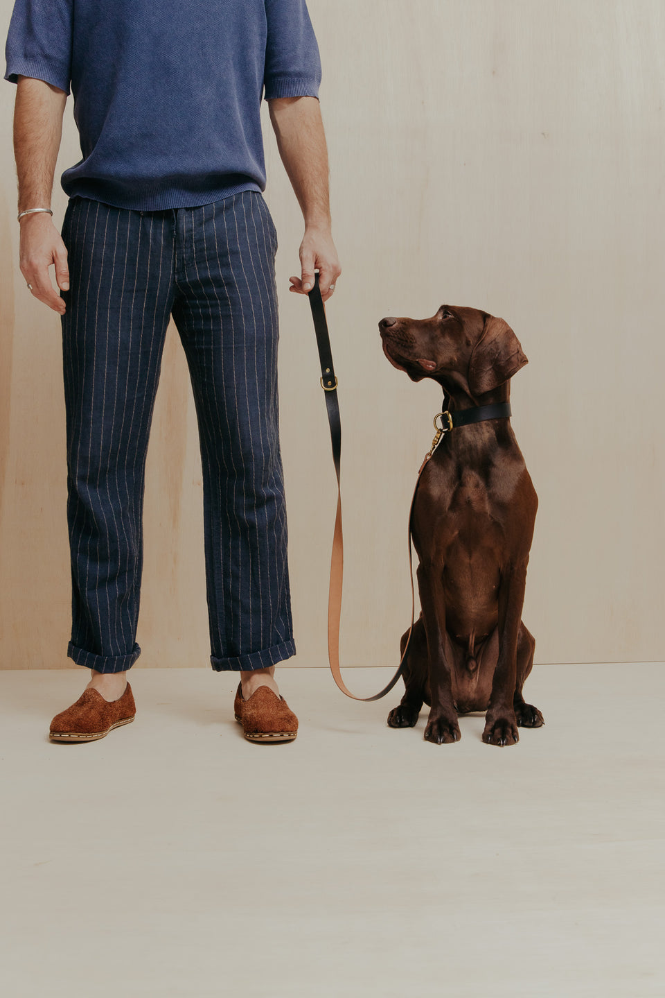 Our Dog Leashes are entirely handmade in El Paso, Texas of high quality leathers & solid brass hardware that will age beautifully, get softer with use and last for years of dog walks & fetch to come. The leash design is classic & minimal -- allowing for the exquisite leather & solid brass hardware to be the statement. Available in one size.