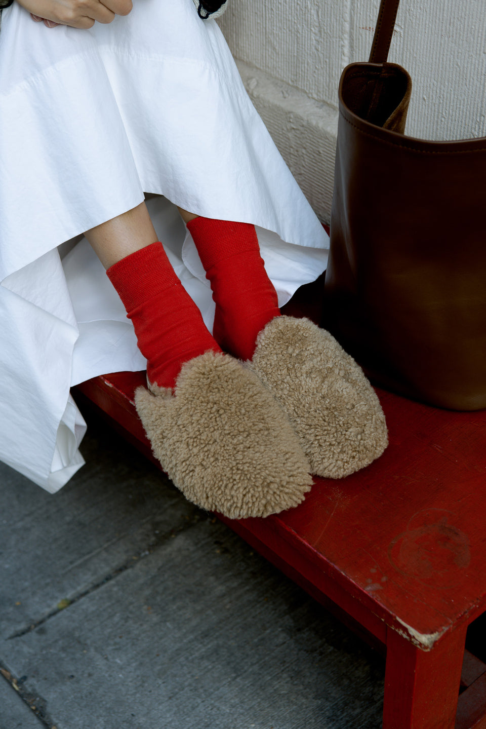 Part of our Collector's Series, the Bernie Baba is an edition of 235 pairs -- entirely handmade using the most ridiculously fluffy Shearling we could get our hands on, inside & out. These require extra care & attention -- trim, snip, shave are just a few steps to get BERNIE looking right.