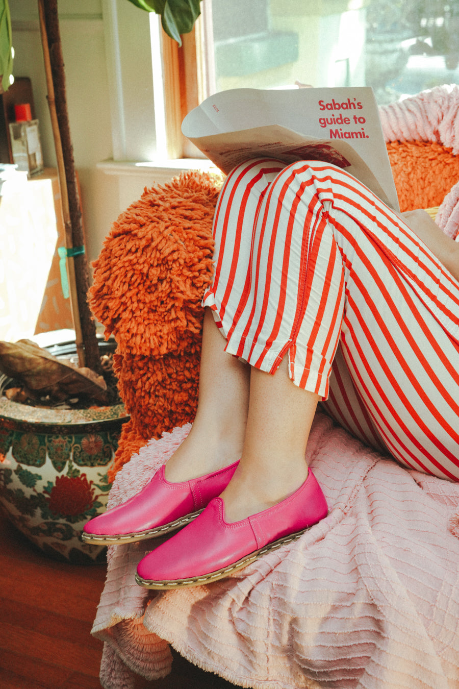 Our Condesa Sabah was inspired by several trips I took to Mexico City, where I became enamoured with the different hues of pink found throughout. This included a visit to the famous homes designed by Luis Barragán, in particular Casa Gilardi and Cuadra San Cristobal where this specific vibrant pink swept me away. Quickly becoming a signature Sabah shade, you'll find it accenting our Sabah Studio walls and in this vibrant, soft leather we had produced in Istanbul. Enjoy!
