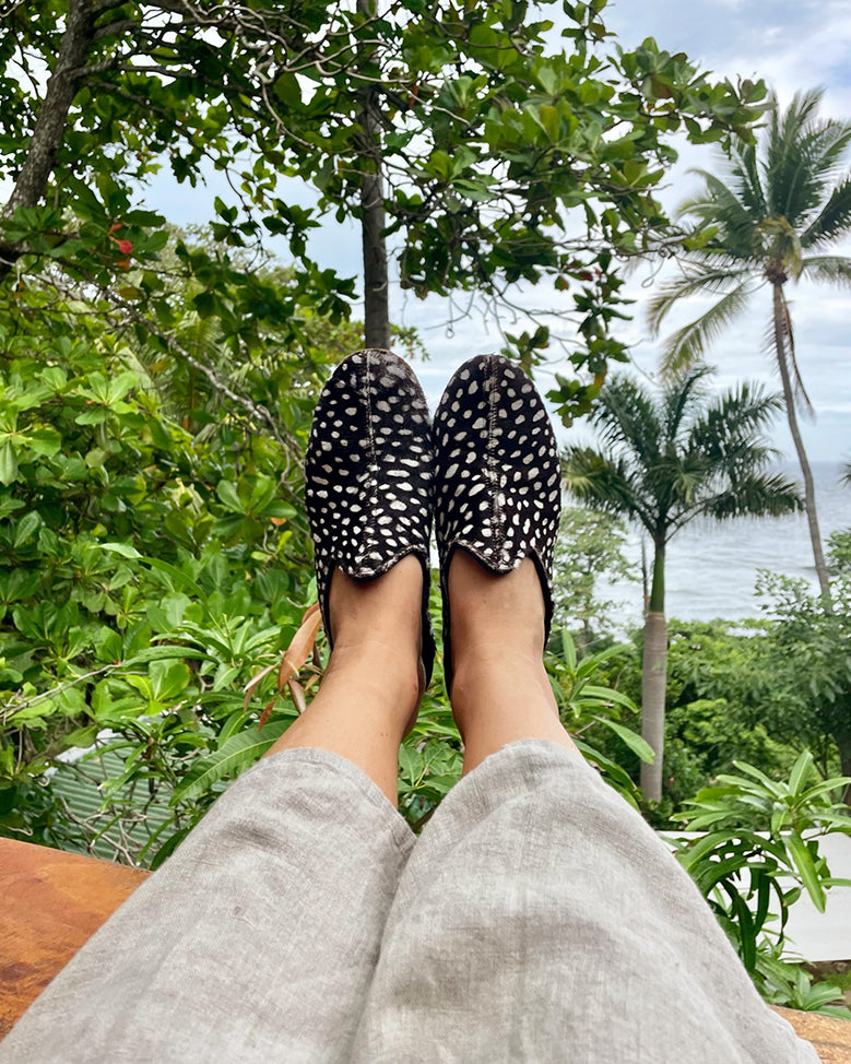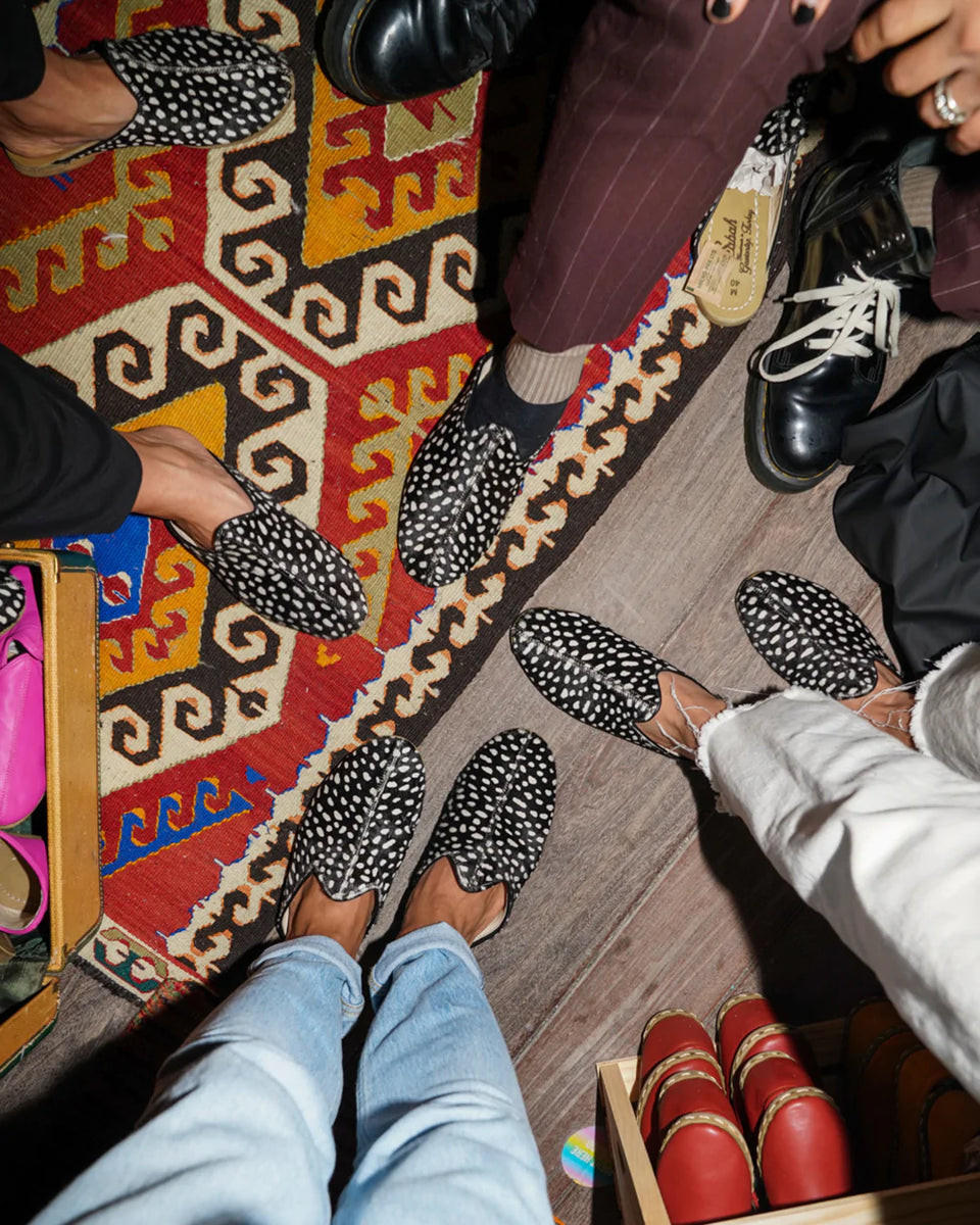 One of our most sought after Babas to date, the Kare Kare! This Baba features a hair-on cow leather printed with a custom dotted pattern inspired by the guinea hen. It was developed and produced just for Sabah and is one of those prints that, well, just pops. Enjoy!