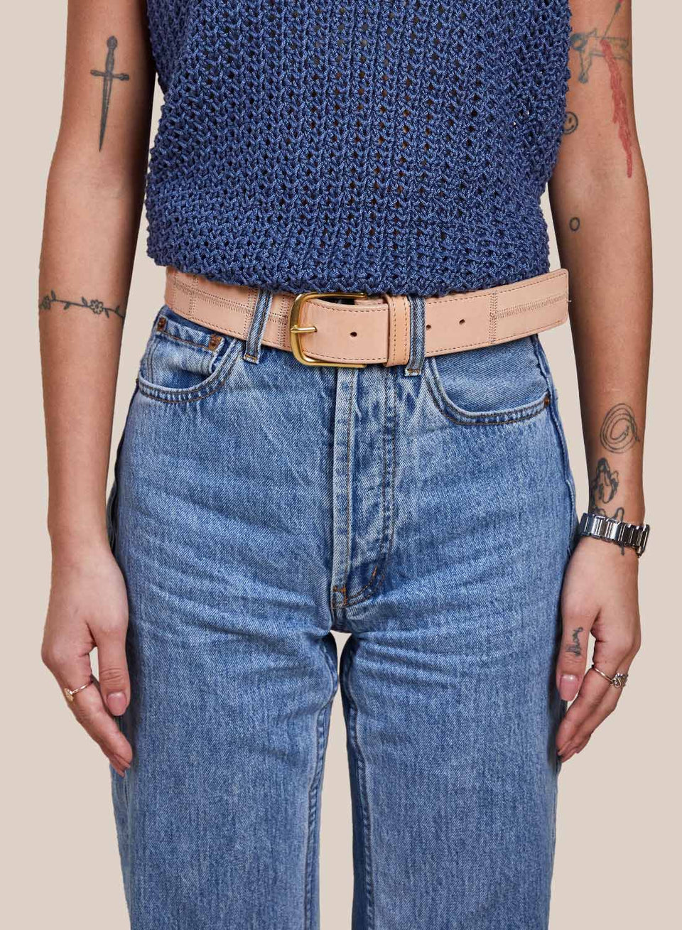 Our Patchwork Belt is made by up-cycling scrap leather from our El Paso Baba production. Those scrap pieces are cut & then carefully stitched together using an intricate zig-zag stitch. This patchwork technique is a canvas for highlighting the different stages at which the scraps have seen sunlight and aged. As such, no two belts are identical and each belt will take on its own unique look & story with wear. Available in sizes 28 to 40, we suggest to choose +3 over your waist size to determine the proper belt length.