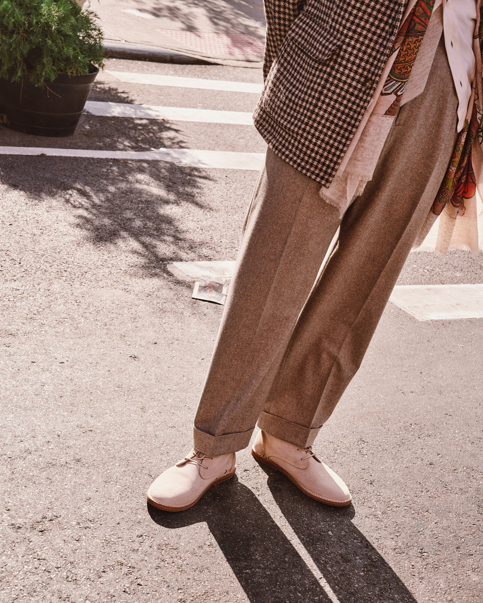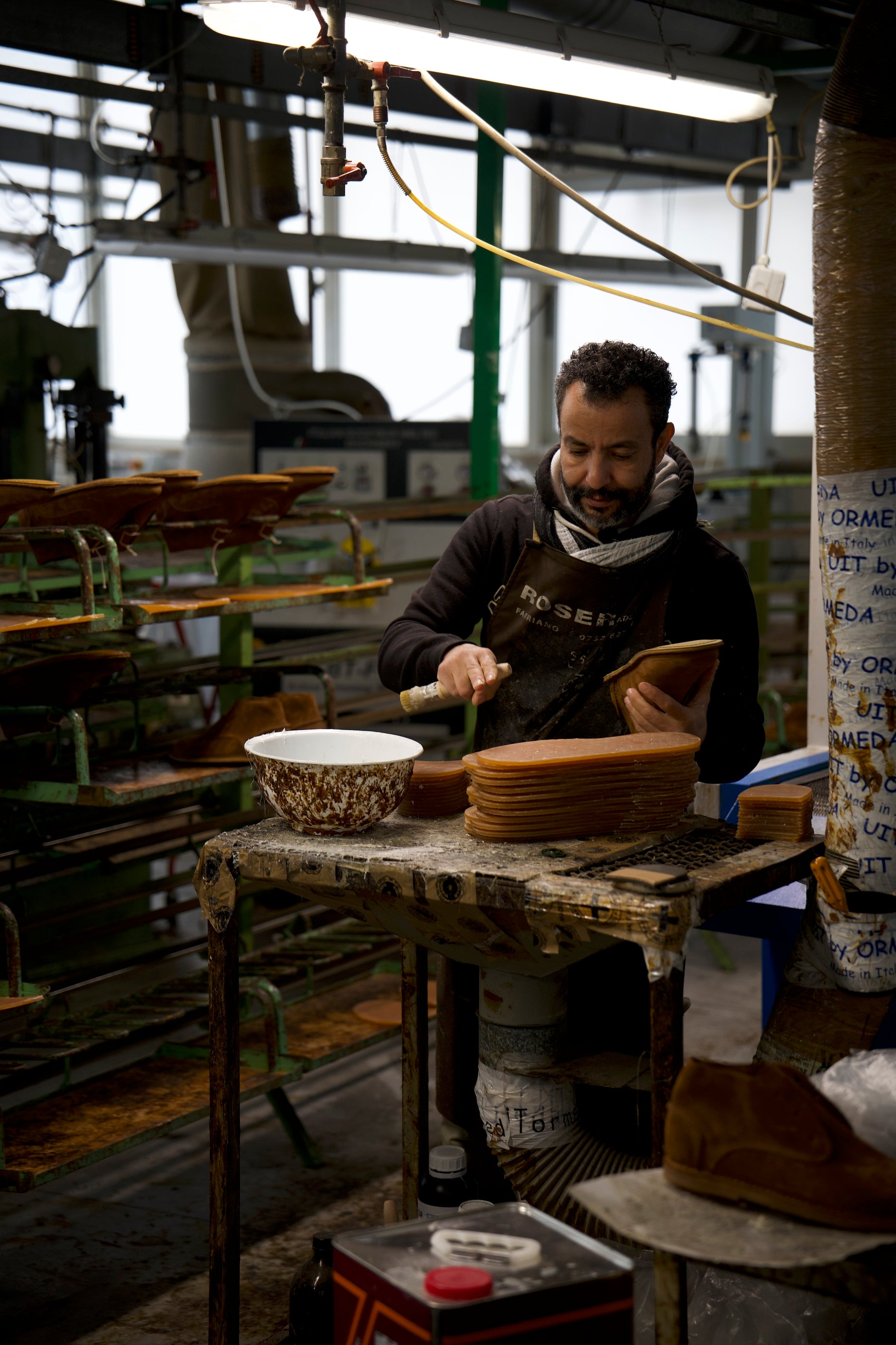 He runs his workshop nestled in the Marche Region of Italy, which is renowned for storied shoemaking techniques, specifically an artisanal stitchdown construction.