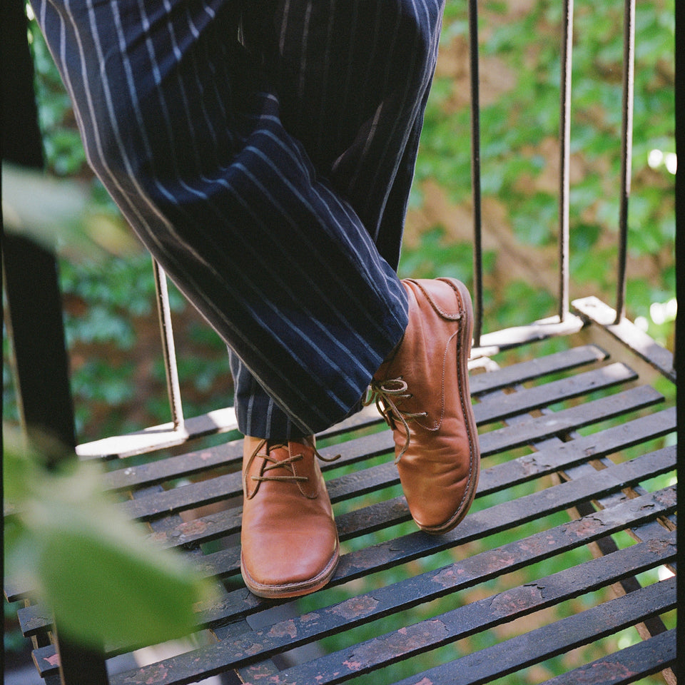 This was a pet project of David & mine -- to make an Alto Boot using a 100% vegetable tanned & undyed leather. This leather comes from a very specific tannery in Tuscany, which, since 1946, over four generations, has specialized exclusively in vegetable tanning using artisanal techniques with a deep commitment to premium quality & ecological sustainability.The result of their efforts is leather hides that are highly coveted in the shoe industry and produced in limited quantities: milled for softness, unblemished and beautiful, and created using only natural ingredients.As such, these Alto Boots will turn a beautiful golden brown with wear and exposure to sunlight and the elements. They'll form to your feet like a glove. And, with a touch of care, these boots will last a lifetime. Enjoy.